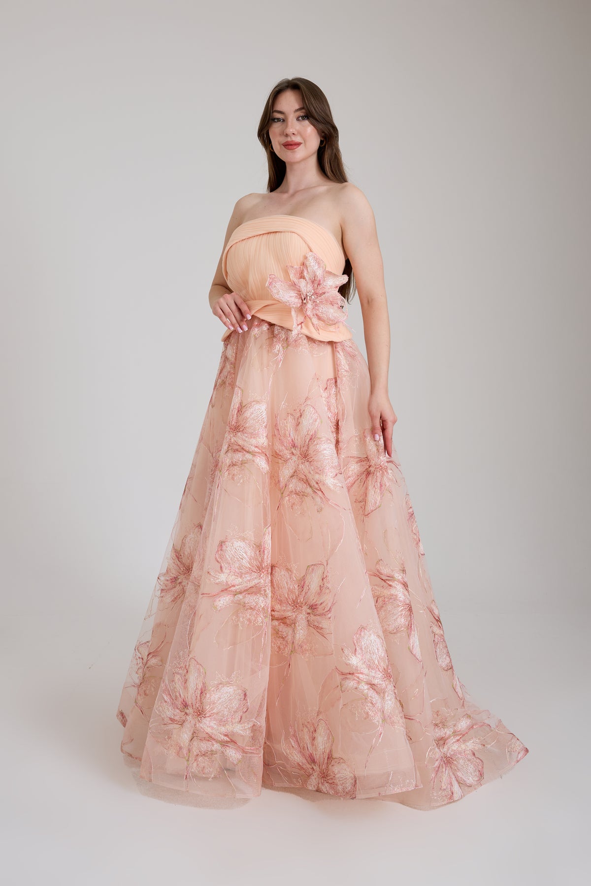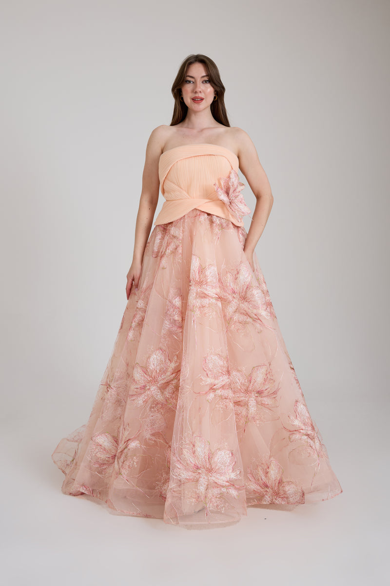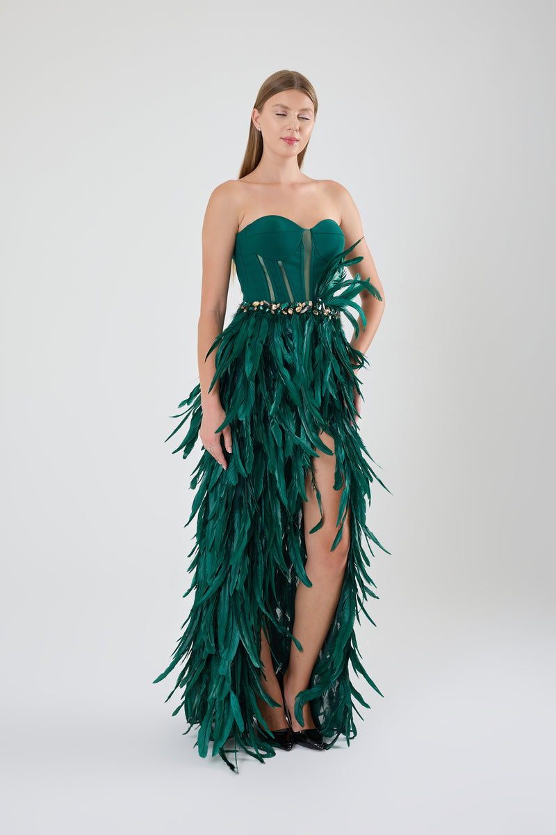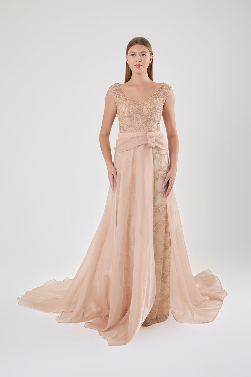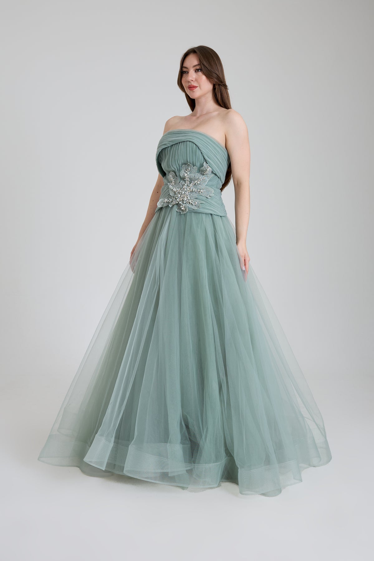 GÖGÜS DEKOLTELİ OMZU AÇIK ABİYE UZUN ELBİSE