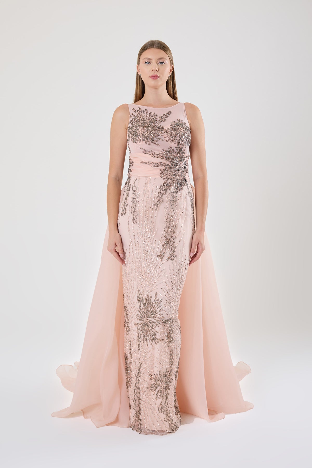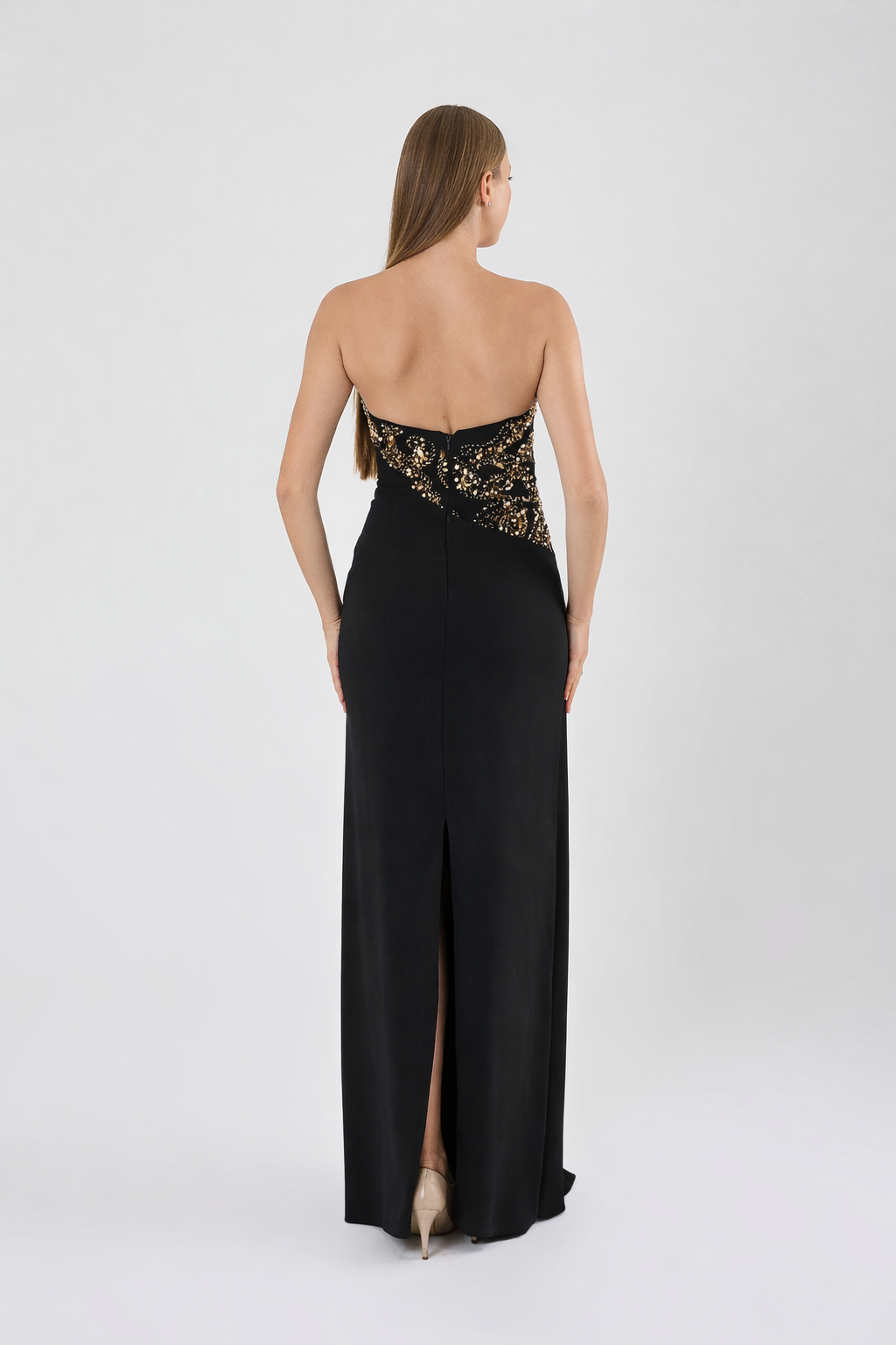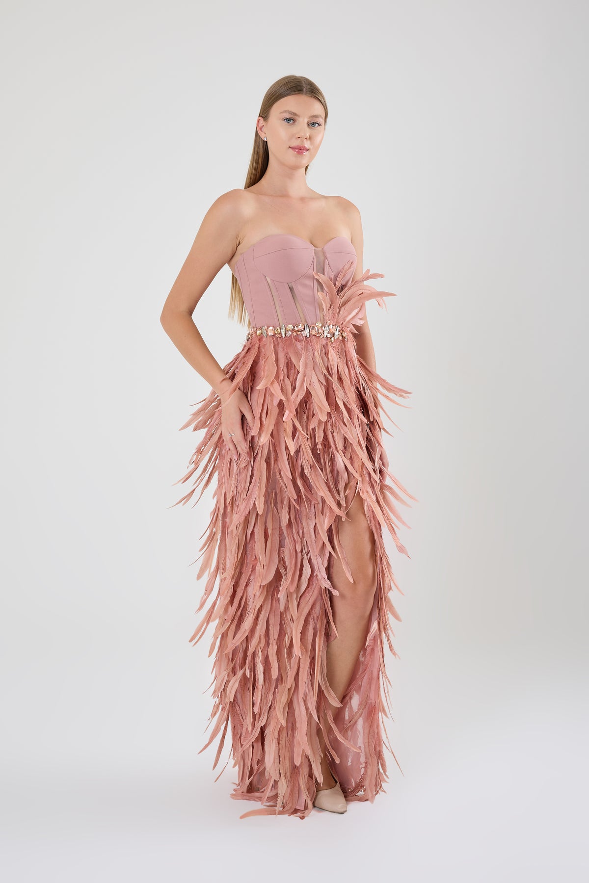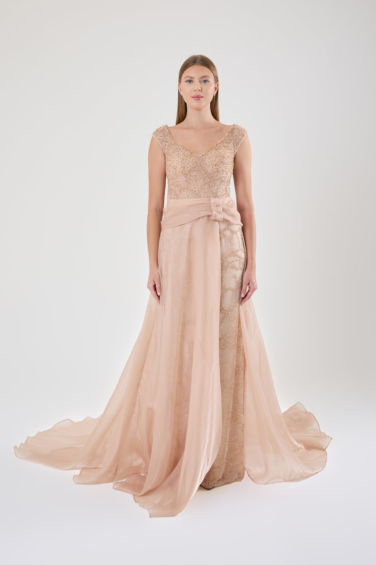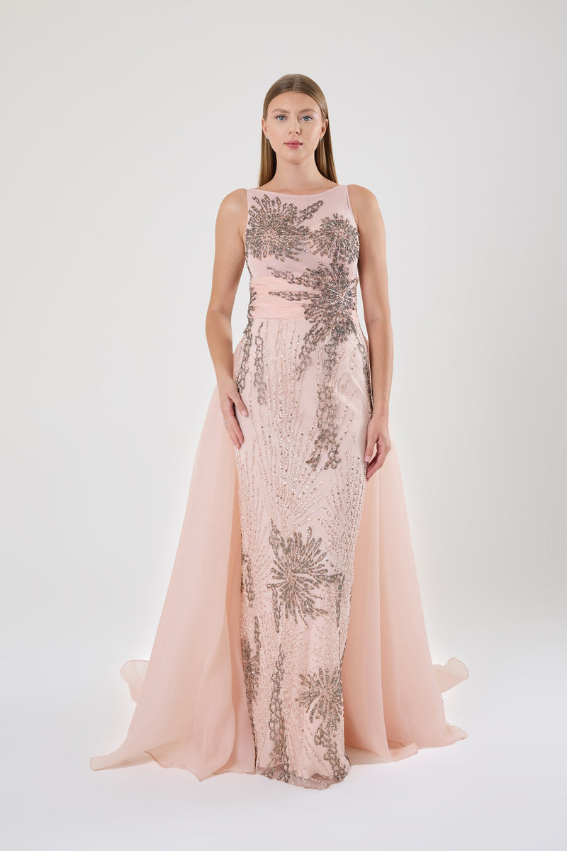 GÖGÜS DEKOLTELİ OMZU AÇIK ABİYE UZUN ELBİSE